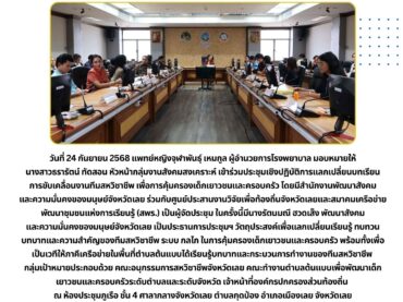 วันที่ 24 กันยายน 2568 แพทย์หญิงจุฬาพันธุ์ เหมกูล ผู้อำ […]