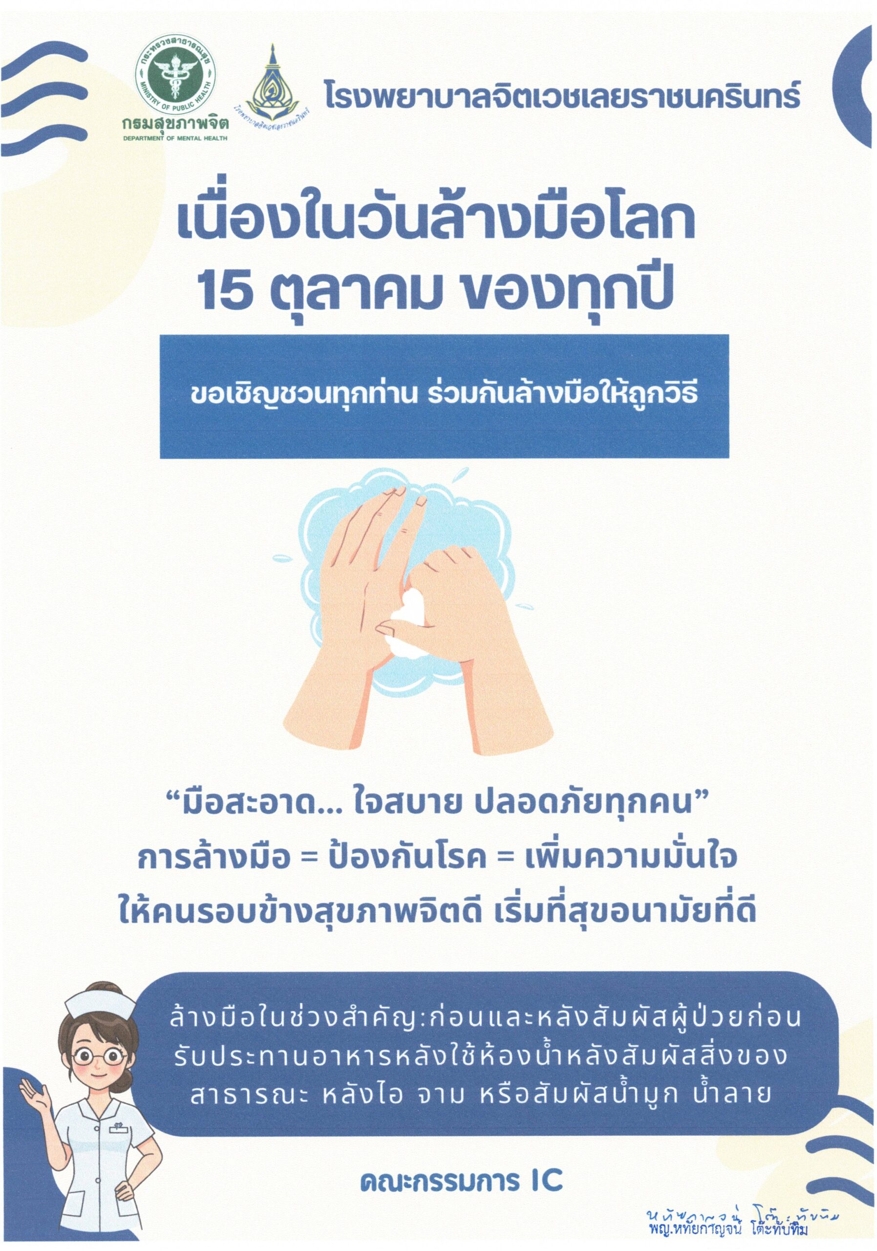 15 ตุลาคม ของทุกปี โรงพยาบาลจิตเวชเลยฯ ขอเชิญชวนทุกท่าน ร่วมกันล้างมือให้ถูกวิธี ตุลาคม 15, 2025ตุลาคม 15, 2025ภาสกร นวลจันทร์อินโฟกราฟฟิก เนื่องในวันล้างมือโลก 15 ตุลาคม ของทุกปี จำนวนผู้เข้าชม : 0
