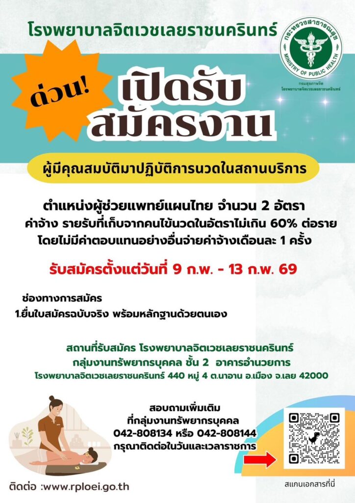 ตำแหน่งผู้ช่วยแพทย์แผนไทย จำนวน 2 อัตรา