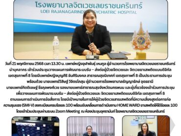 แพทย์หญิงจุฬาพันธุ์ เหมกูล ผู้อำนวยการโรงพยาบาลจิตเวชเลยราชนครินทร์ นำบุคลากร เข้าร่วมประชุมวางแผนการพัฒนาระบบรับ – ส่งต่อผู้ป่วยจิตเวชและ จิตเวชยาเสพติดแบบดิจิทัล เขตสุขภาพที่ 8 ธันวาคม 15, 2025ภาสกร นวลจันทร์ข่าวประชาสัมพันธ์